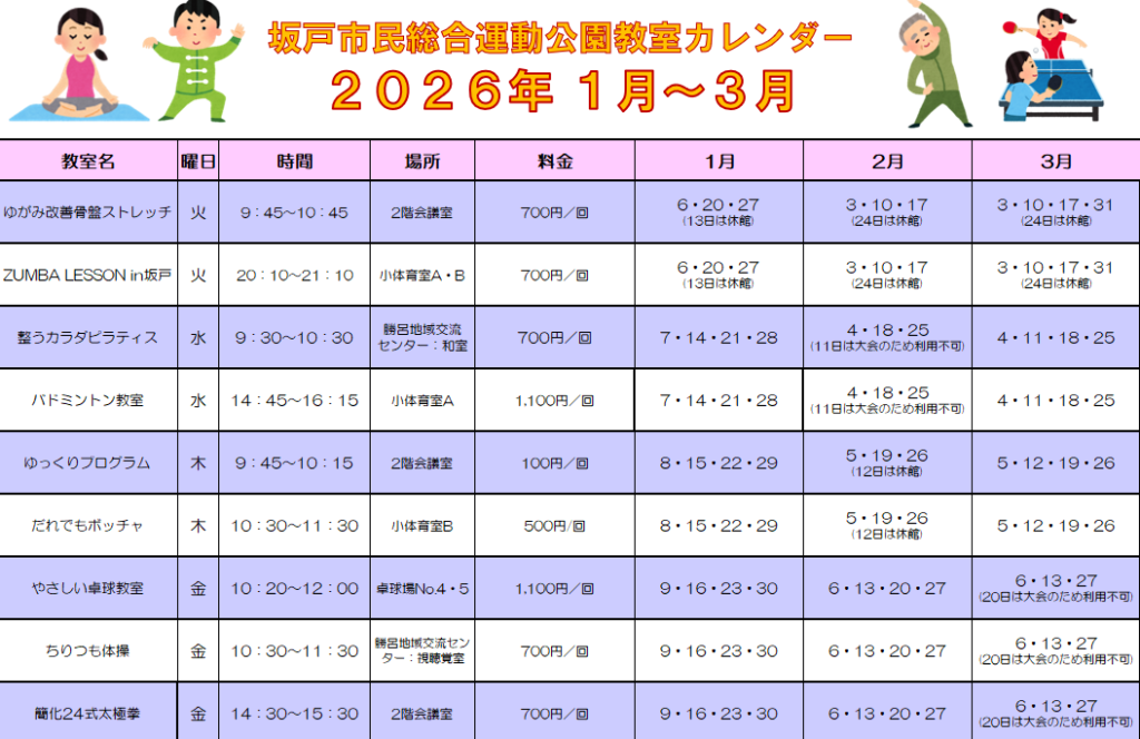 令和8年1月4日より耐震補強等工事により教室の開催場所が変更になります。